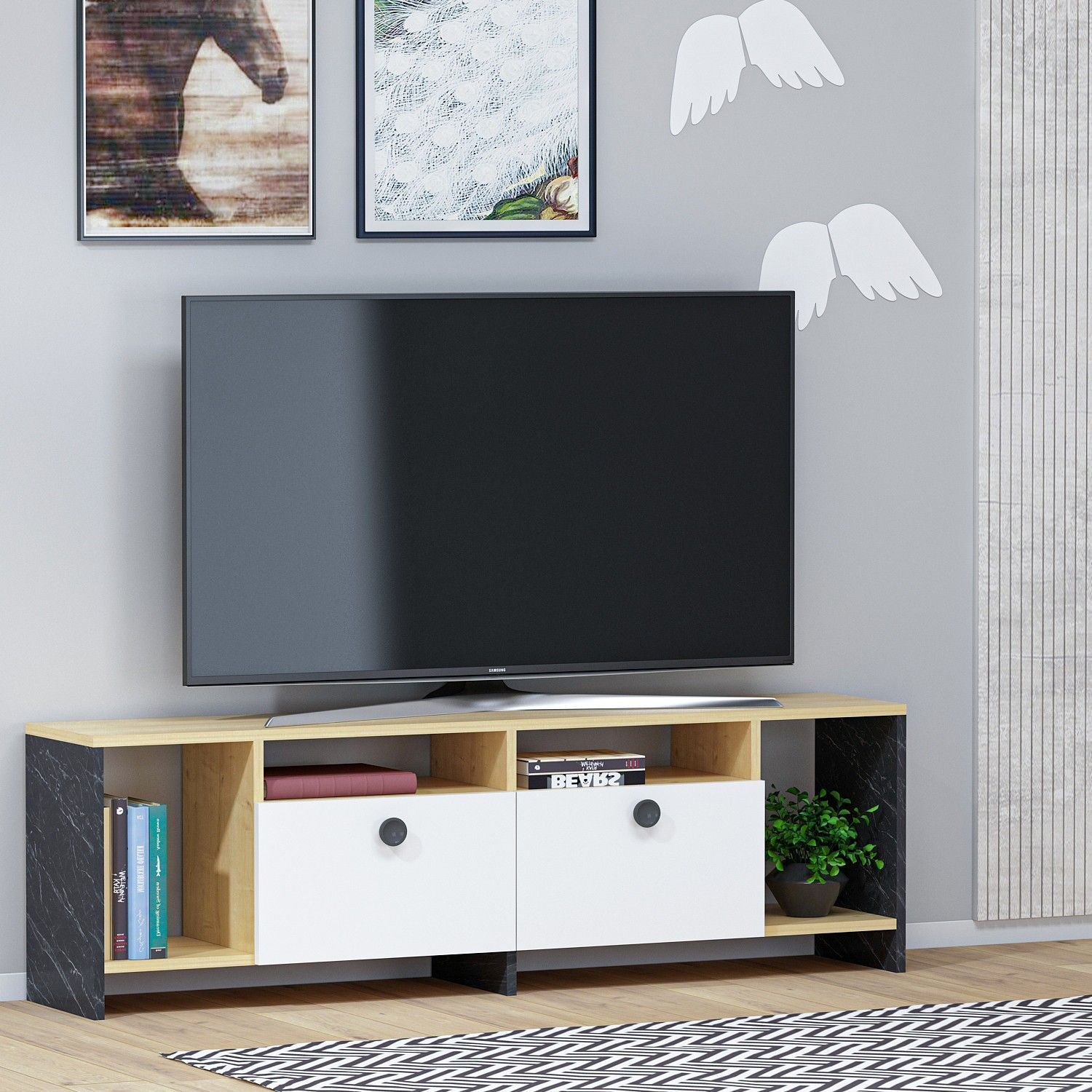 Monster mediebenk - Safir/eik/svart/hvit