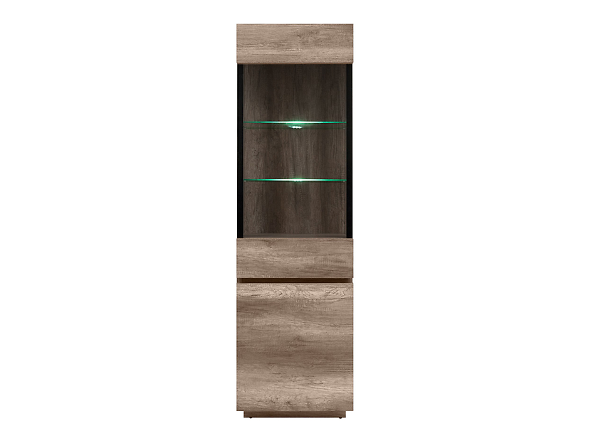 Et lekkert skap med glassdør og skuff under. Skapet er utstyrt med LED-belysning som sammen med glassdøren gir en fin effekt.
