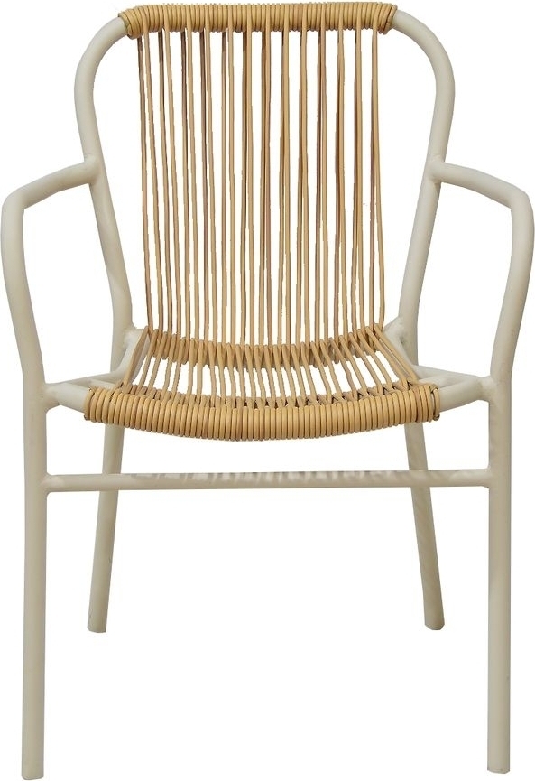 Motala lenestol i naturlig farget kurv med ben laget av hvit aluminium. Stol med pene detaljer Også tilgjengelig med svarte ben.
