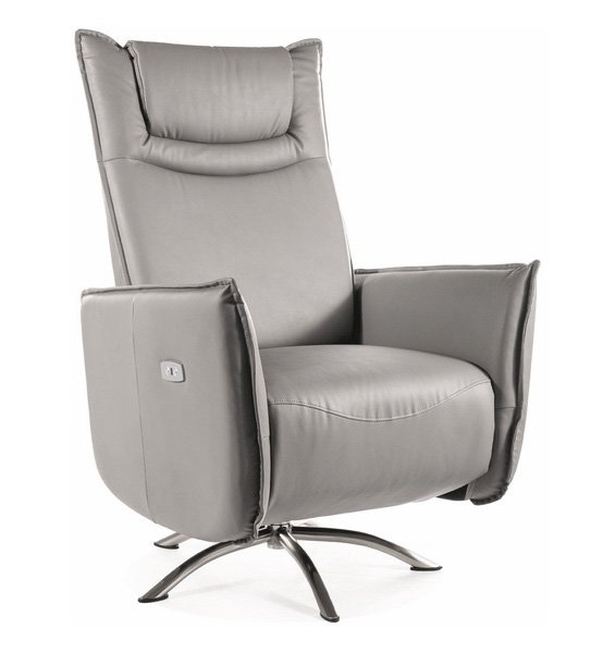 Moderne og komfortabel elektrisk lenestol. Dekket av et skinnlignende grått PU-materiale. Enkel elektrisk justering til din favorittposisjon ved hjelp av de to knappene på siden av lenestolen.