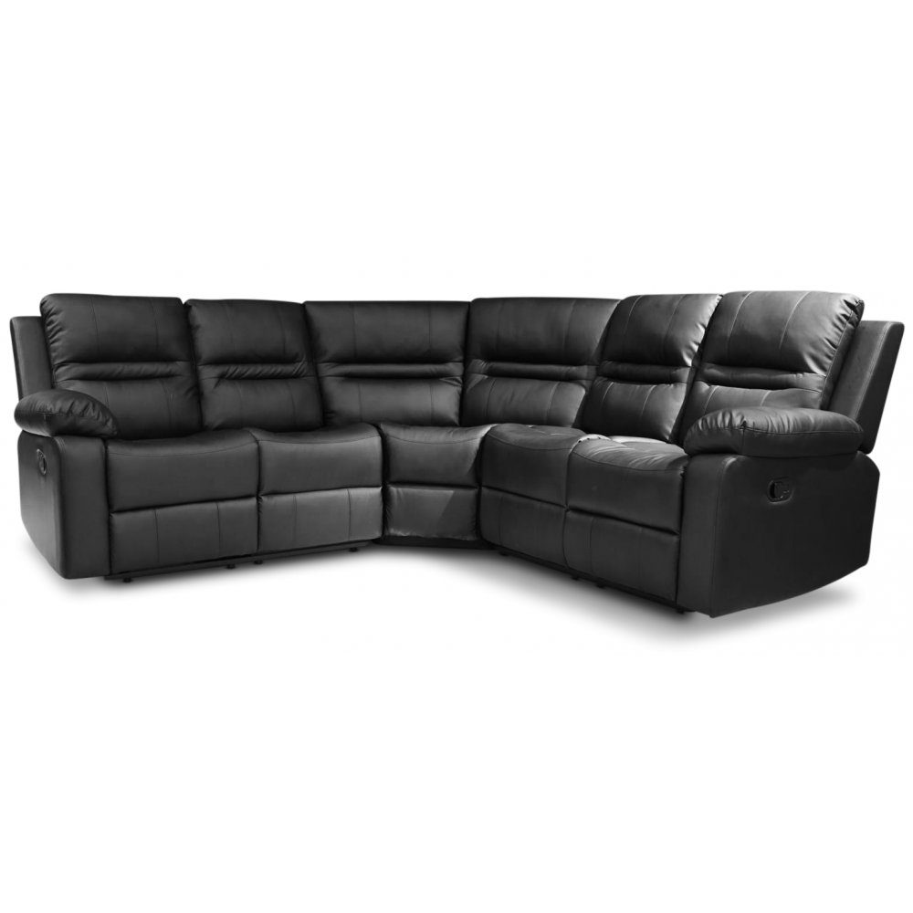 Luksuriøs og komfortabel hjørnesofa med reclinerfunksjon. Perfekt når du bare vil lene deg tilbake og slappe av. Sofaen er kledd i et mykt svart PU. Reclinerfunksjon i begge yttersetene.