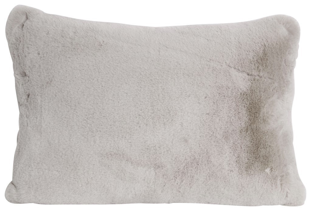 Mykt putetrekk i beige pelslignende materiale, 100 % polyester.