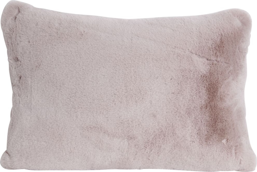 Mykt putetrekk i lys rosa pelslignende materiale, 100 % polyester.