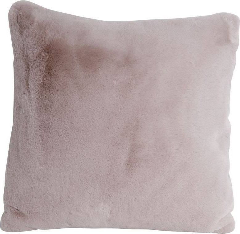 Mykt putetrekk i rosa pelslignende materiale, 100 % polyester.