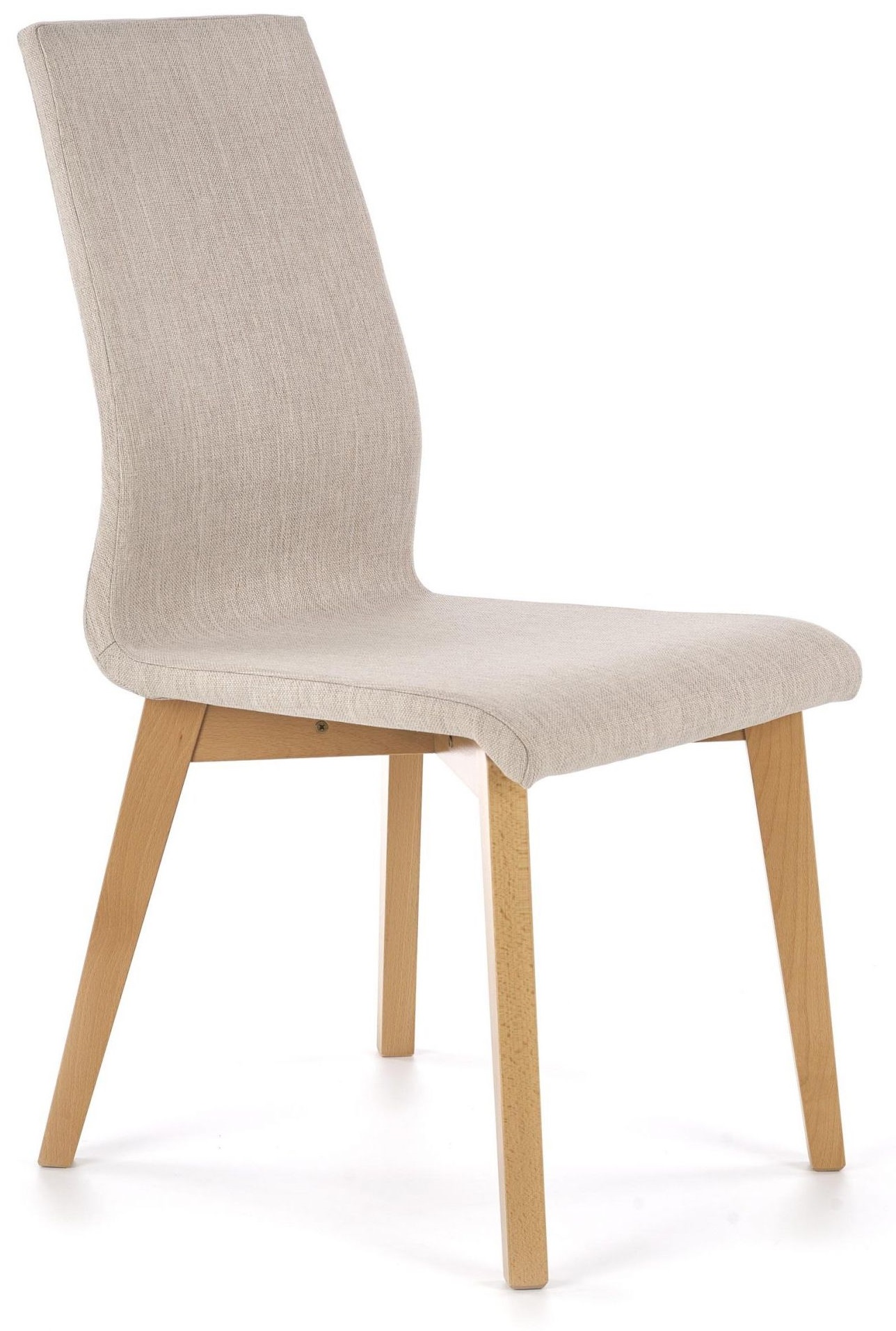 En pen spisestol med en stilren design. Stolen er kledd med et veldig behagelig stoff for maksimal komfort og understellet er tilvirket av solid tre.