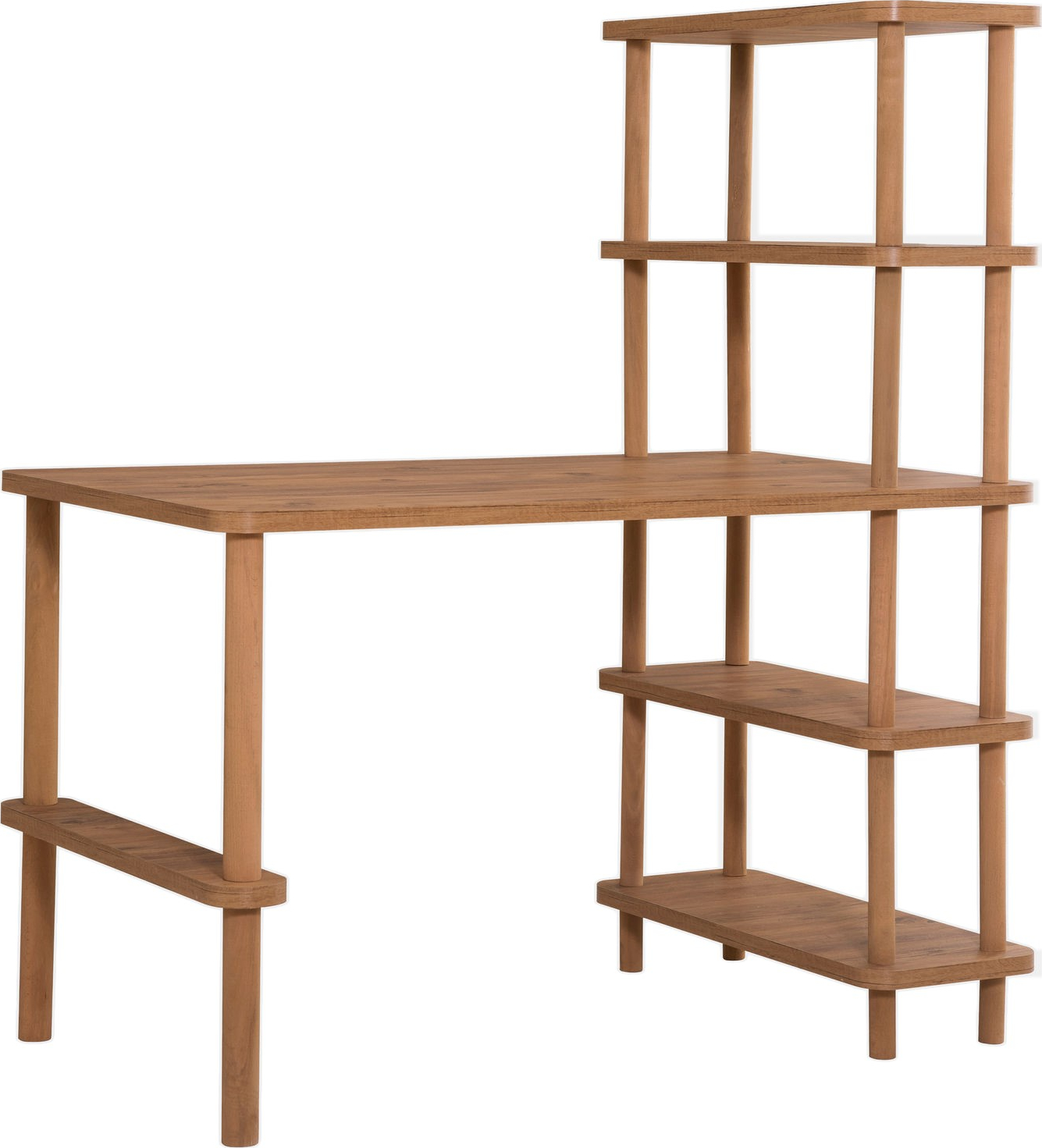 Skrivebord laget av melaminbelagt sponplate og agnbøk.