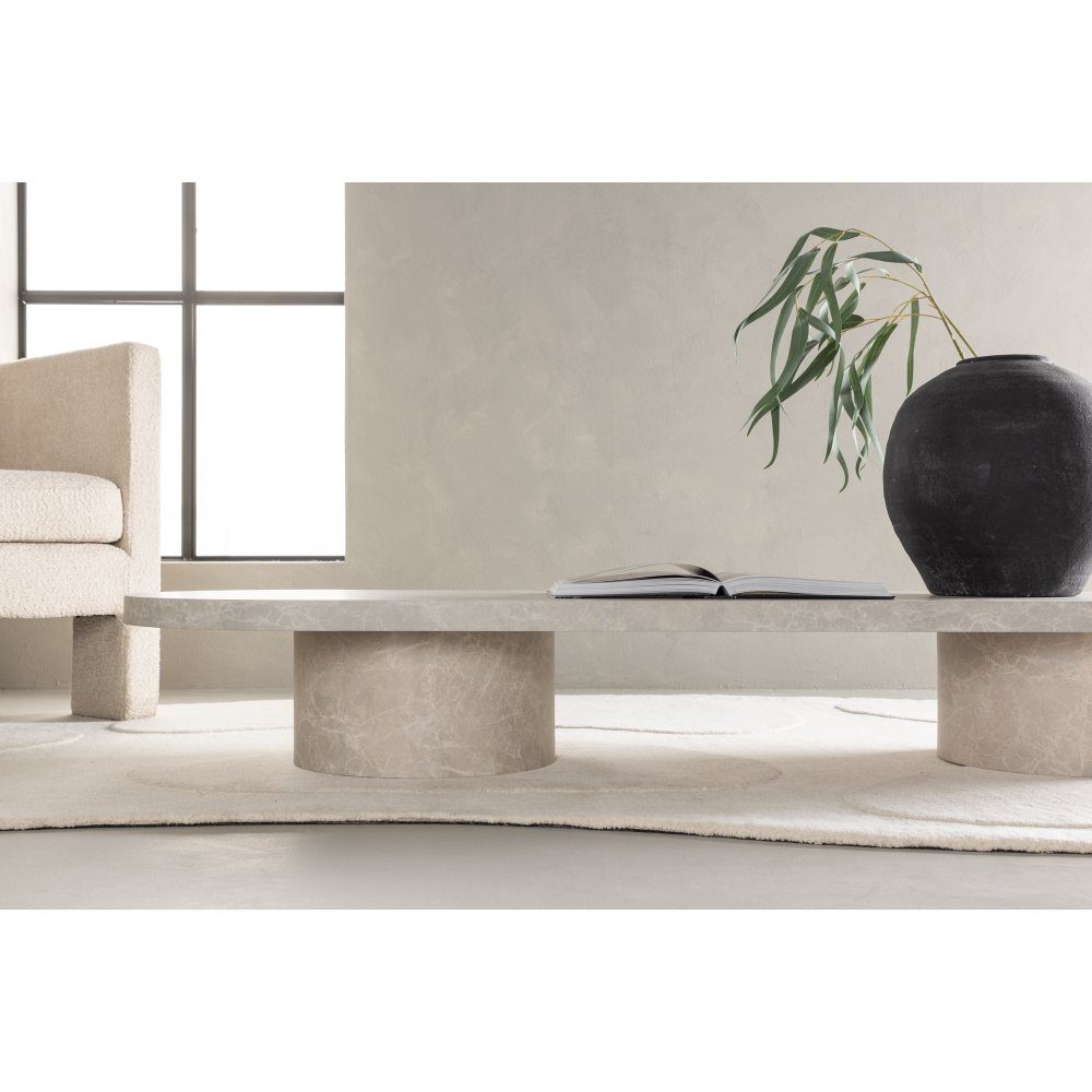 Narvik salongbord er et perfekt salongbord for de som ønsker å skape en moderne og fredelig atmosfære i hjemmet sitt. Med sin myke beige farge i marmorfinish tilfører bordet et skandinavisk preg og en naturlig estetikk til rommet. Dens minimalistiske design med avrundede former gir en følelse av ro og harmoni, noe som gjør den til et stilig og allsidig element i interiøret ditt.
