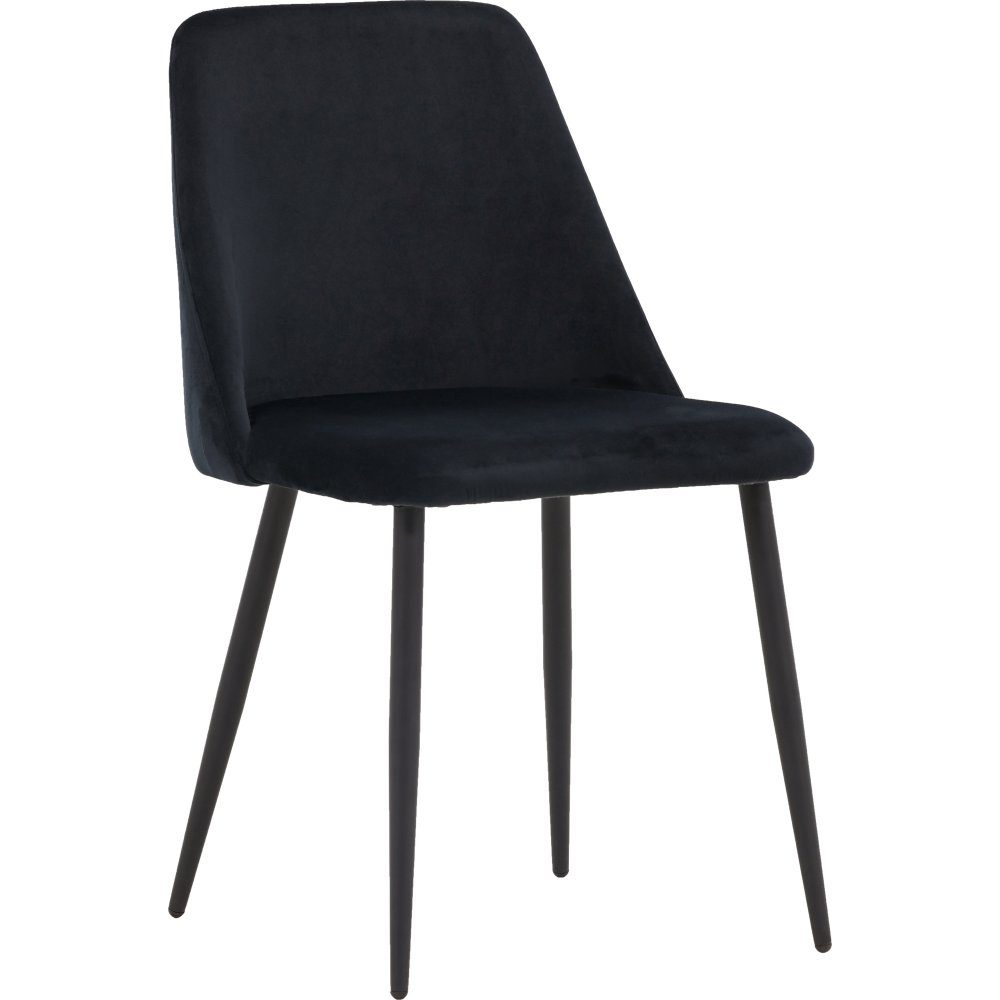 Spisestuestol med helpolstret sete i sort fløyelsstoff og stolben i matchende sort farge. Her får du en spisestuestol som skaper et luksuriøst skimmer til rommet og bidrar til en innbydende og motebevisst atmosfære. Det skal føles godt å sette seg ned for et velsmakende måltid!