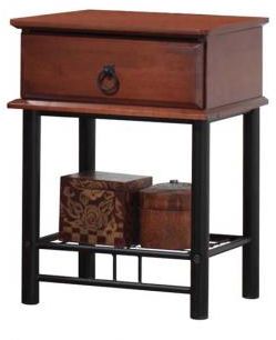 Et stilig nattbord med et moderne design. Understellet er produsert av sort metall med et praktisk hylleplan for oppbevaring av for eksempel bøker eller aviser. Toppen er produsert av MDF med en meget vakker antikk kirsebærfinér og er utrustet med en skuff for øvrig oppbevaring av diverse.