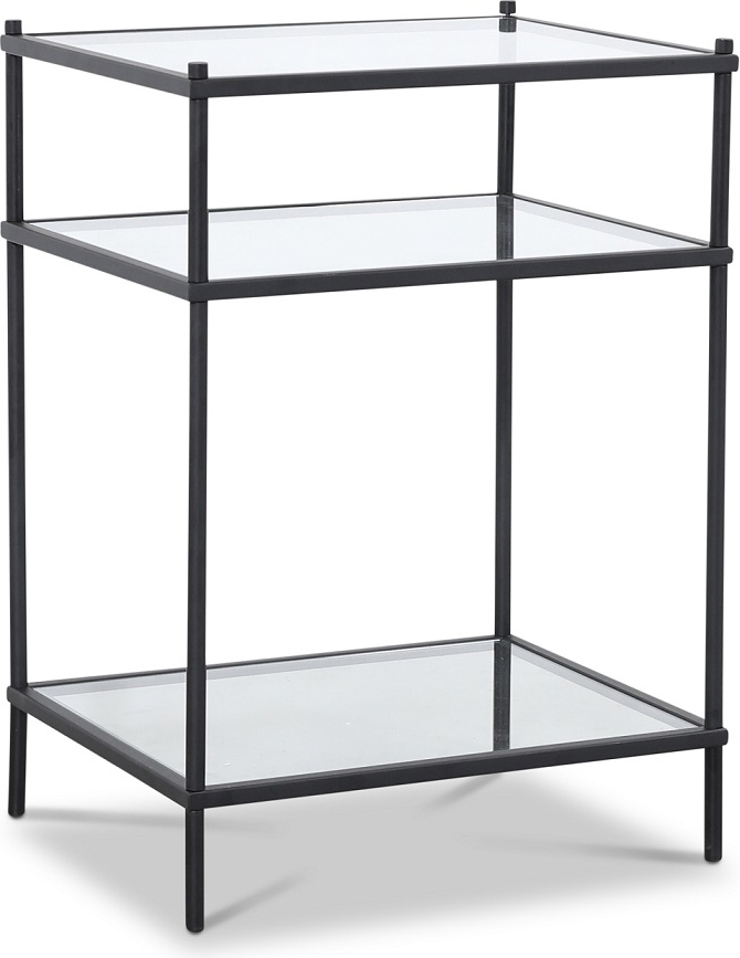Art Deco er en luksuriøs stil som kom på begynnelsen av 1900-tallets glamour i New York. Tiffany Inca er et allsidig møbel i svart pulverlakkert metall med herdet glass i tre plan. Bordet er velutarbeidet med nedsenkede glassplater i metallrammen for å gi et solid inntrykk. Bruk bordet som nattbord, sidebord eller lampebord.
