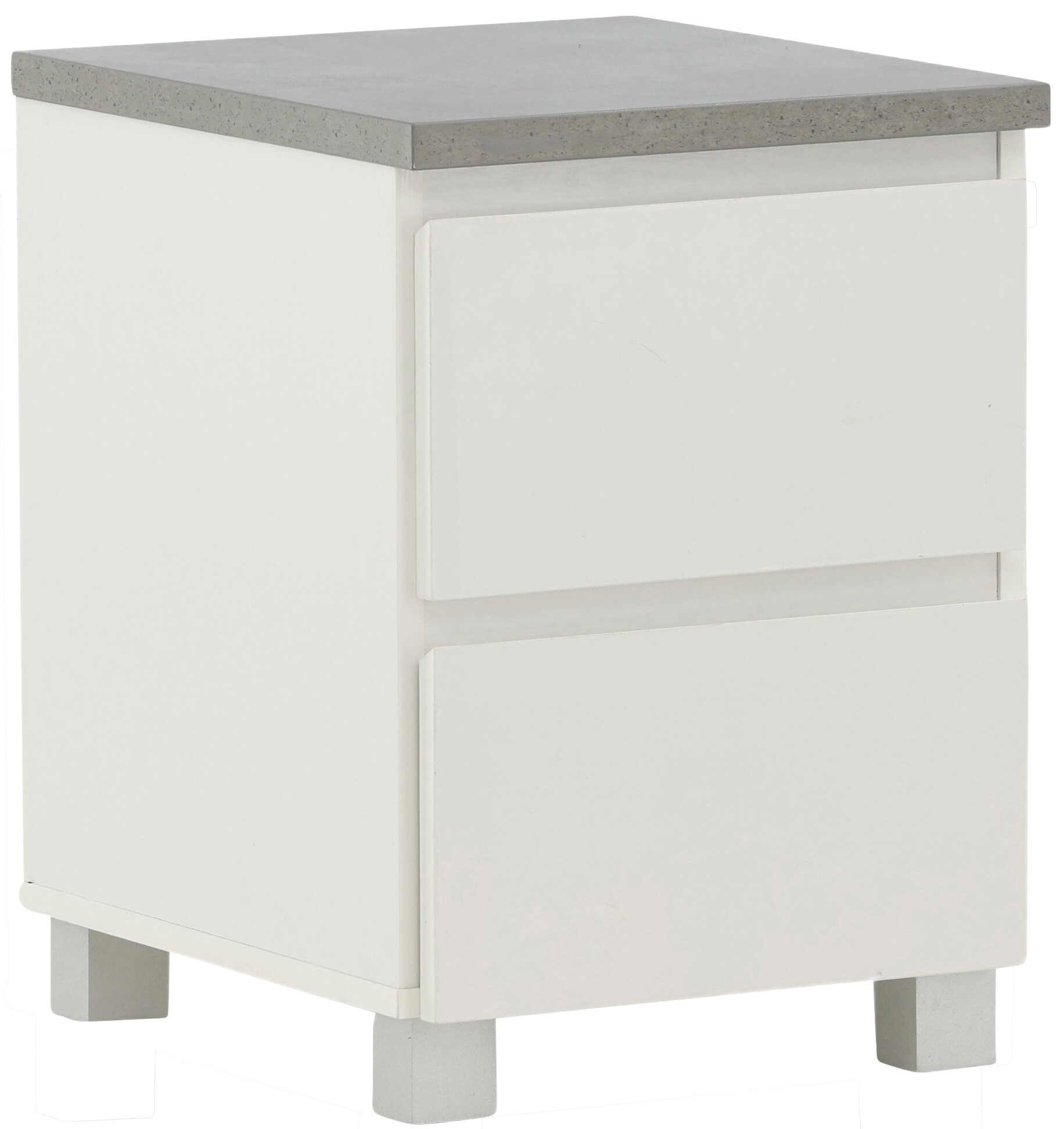 Nattbord av hvit sponplate med topplate i betongimitasjon. Finnes også i svart utførelse.