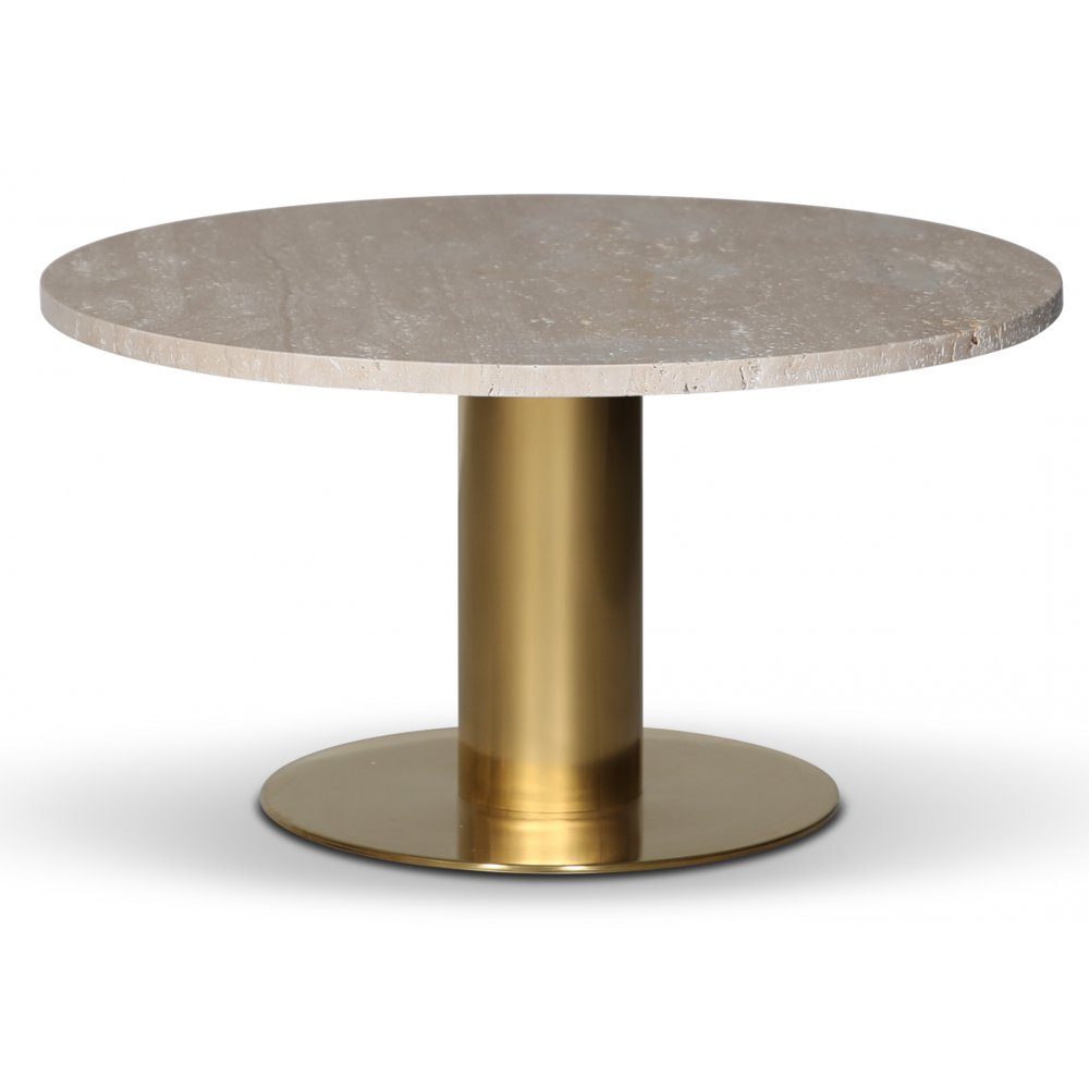 Et stilig salongbord med et luksuriøst moderne preg. Understellet er laget av børstet messing og bordplaten er laget av ekte kalkstein, travertin.
