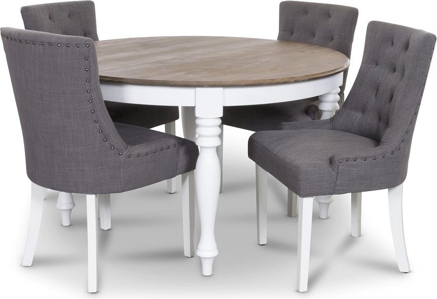 New England spisegruppe inkludert 4 stk Tuva spisestoler i grått stoff