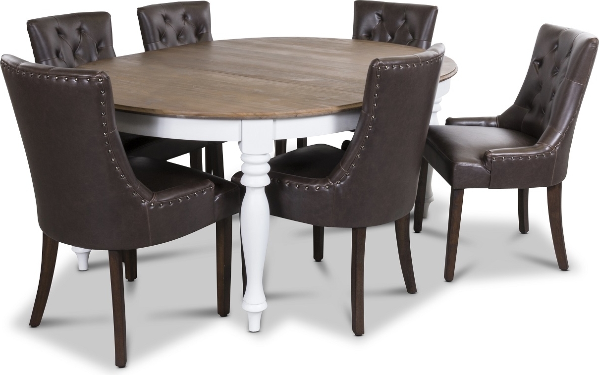 Victoria spisegruppe inkludert 6 stk Tuva spisestoler i brun vintage PU