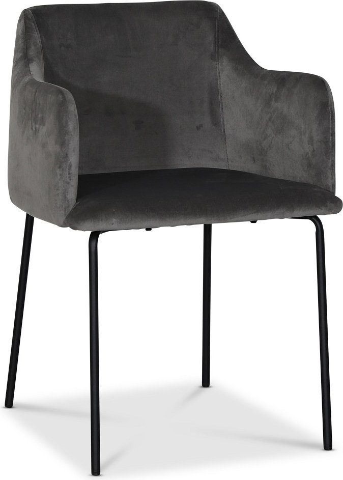 New York lenestol i en elegant design med svarte stålbein. Mørk grå myk fløyel. Perfekt for både moderne spisebord og klassiske spisebord.