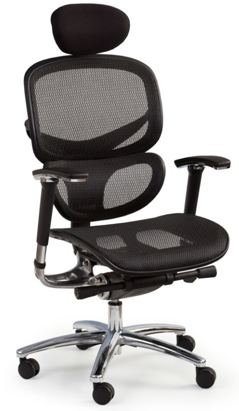 Behaglig kontorstol med et moderne design. Kledd med et herlig sort kunstlær og sort nett for maksimal komfort. Utdragbart sete og justerbare armlener. Stolen flyttes enkelt ved hjelp av hjulene på den krommede stjernefoten.