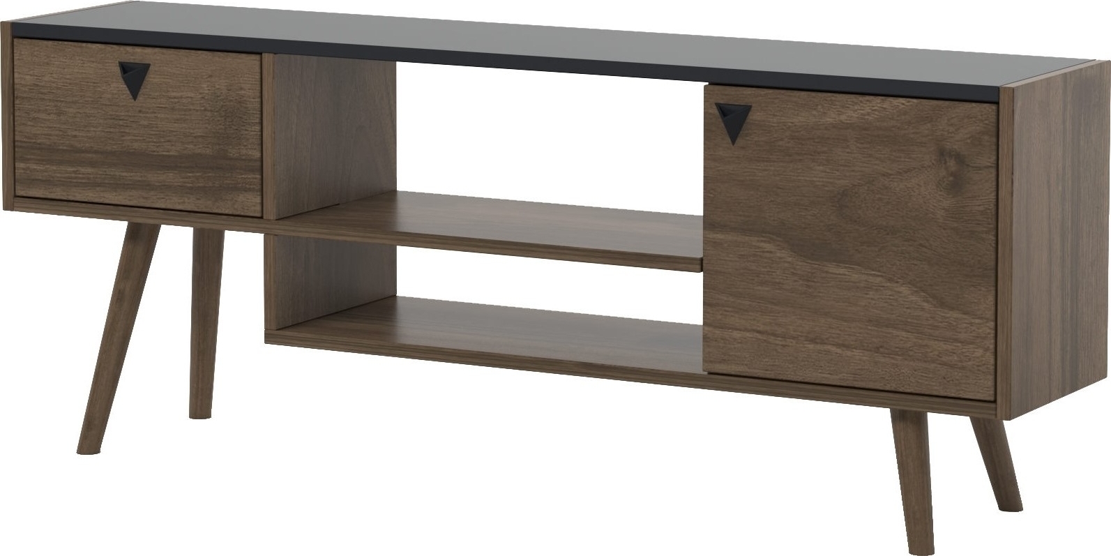 Mediebenk som også er tilgjengelig som en pakke sammen med vegghylle.