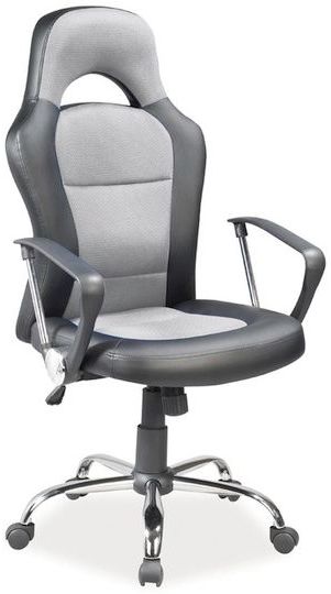 En fin kontorstol med moderne design. Stolen er laget av metall og plast, med et behagelig trekk i blandingen av meshstoff og syntetisk skinn for maksimal komfort. Stolen har vippefunksjon og høyden justeres enkelt ved hjelp av spaken under setet. Stolen er også lett å flytte takket være hjulene på stjernebasen.