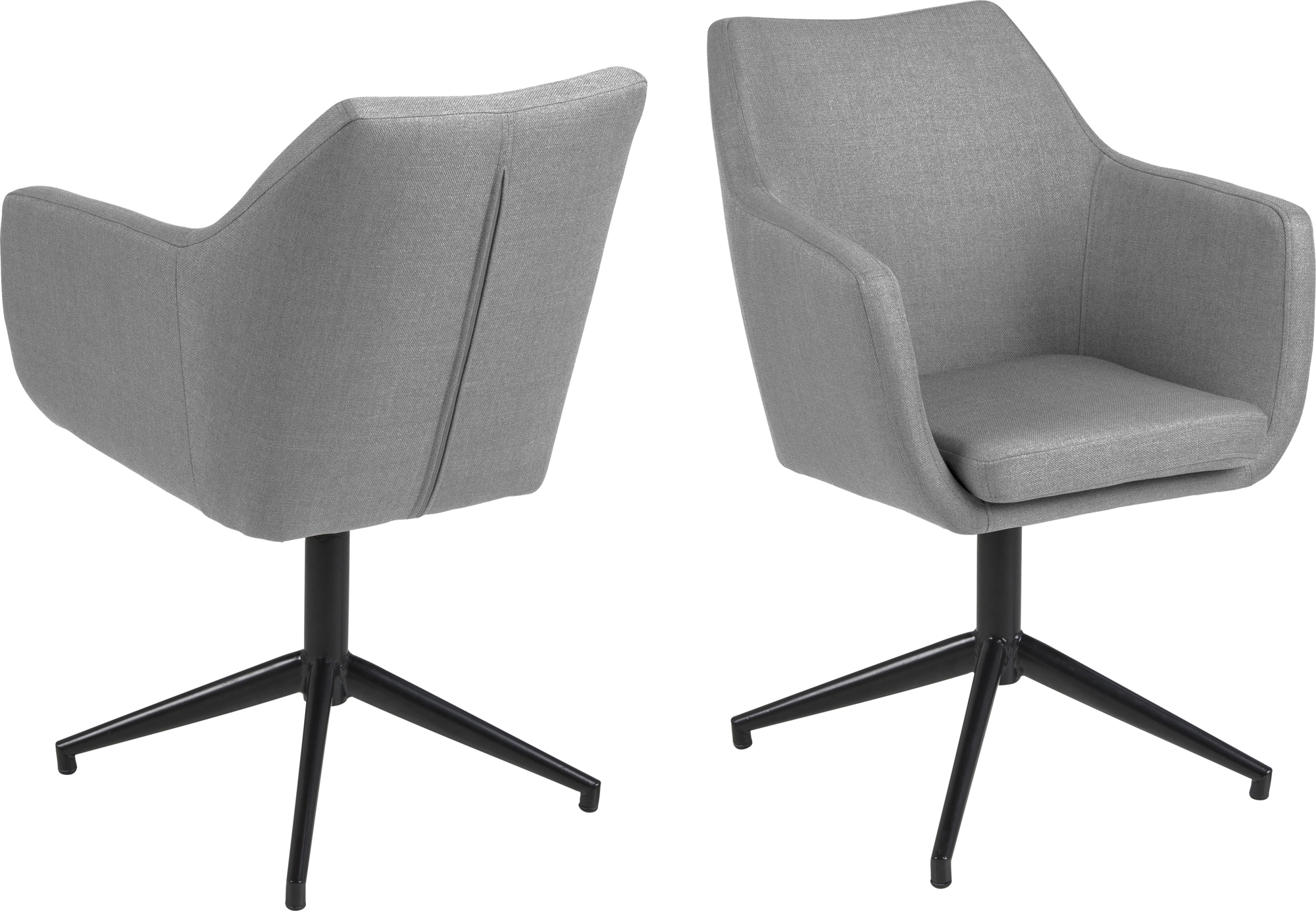Lenestol med pulverlakkerte metallben og polyestertrekk.