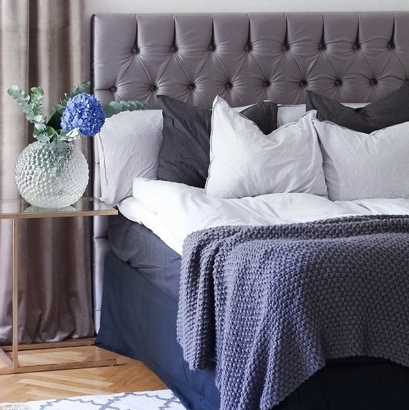 Knappene har samme stoff/skinn som sengegavlen.