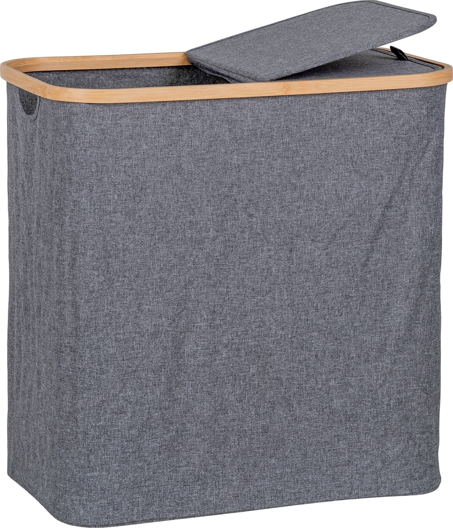 Skittentøyskurv laget av bambus og polyester.