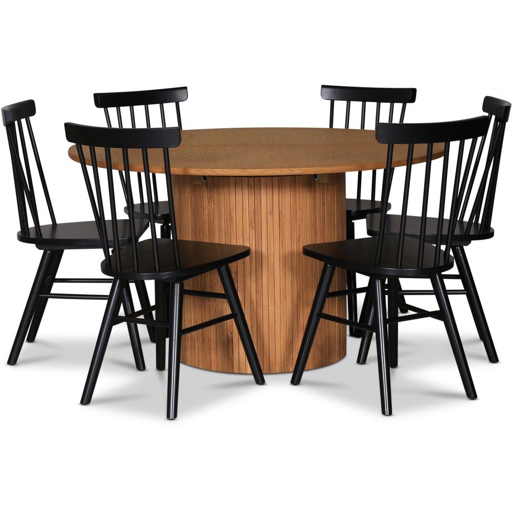 - Nova spisegruppe, uttrekkbart spisebord Ø130-170 cm inkl. 6 stk Orust sorte utkragingsstoler - Oljet eik