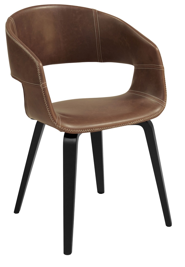 Nova-serien er vår stolserie med et nordisk design og frekke stoler. Denne modellen er en karmstol med fylt sete, vintage brun motstandsdyktig PU med sortmalte ben i massivt tre! Morgendagens klassiker!