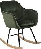 Gyngestol med en klassisk profil. Kledd i skoggrønn fløyel, beinene i svartmalt metall og meiene av lakket bøketre. Stolen inngår i vår Oceanside serie.