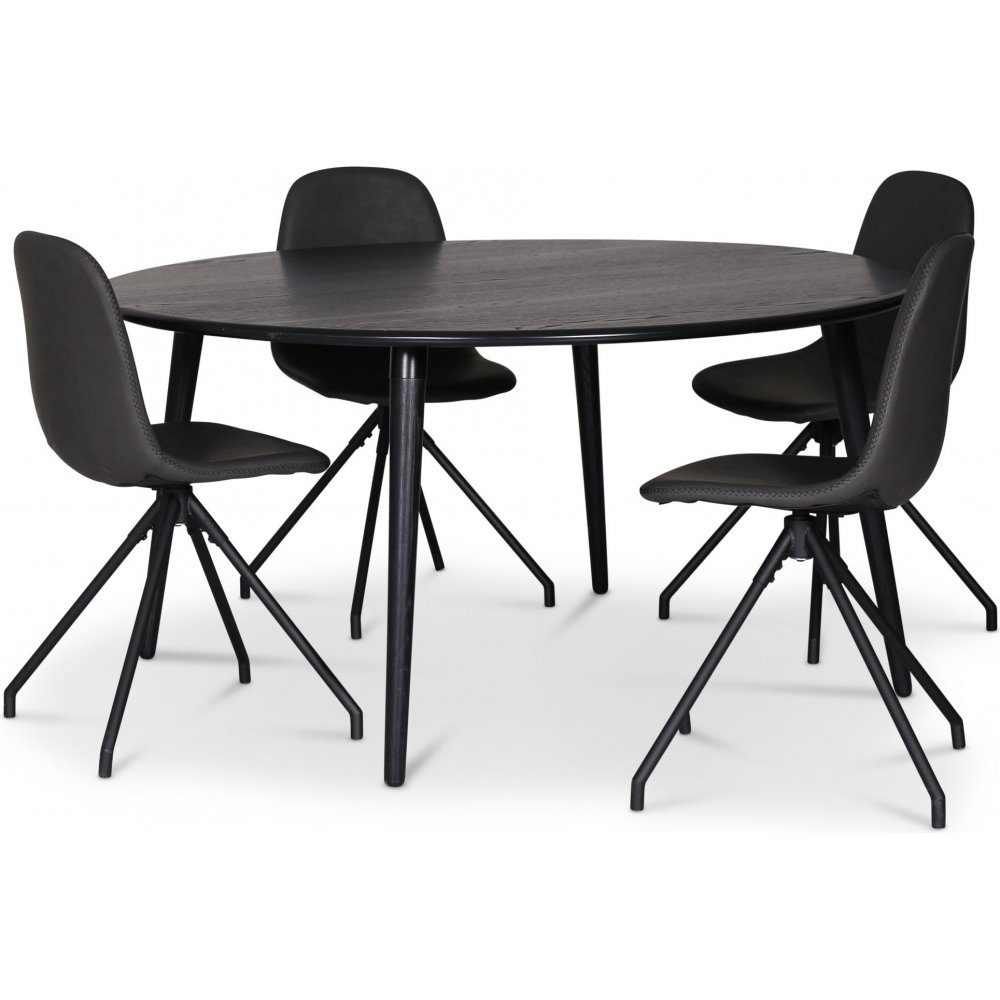 Omni spisegruppe, rundt spisebord Ø130 cm inkludert 4 stk. svarte Bridge svingbare stoler - Svartbeiset eik + Stolpute