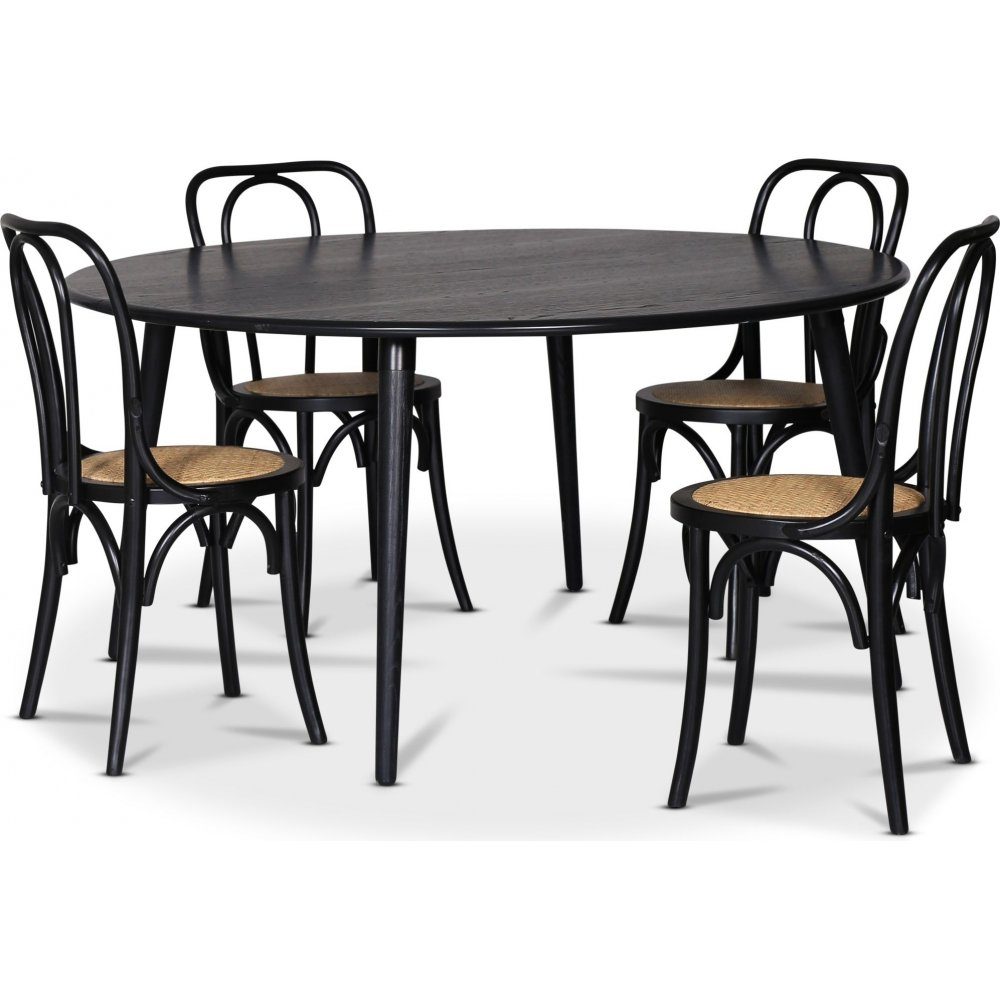 Omni spisegruppe, rundt spisebord Ø130 cm inkludert 4 stk. svarte Tony stoler - Svartbeiset eik