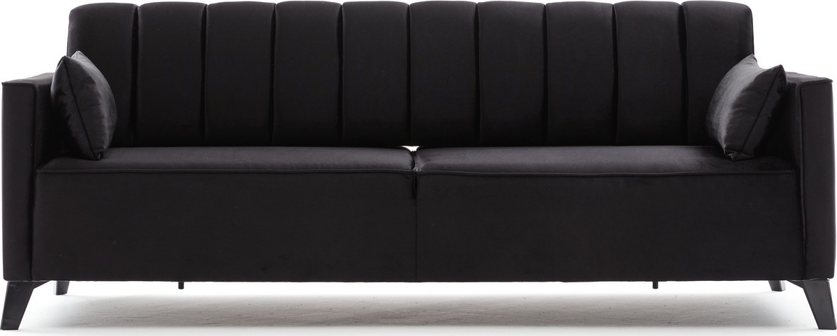 Bøksofa med lin og fløyelstrekk. Plast ben.