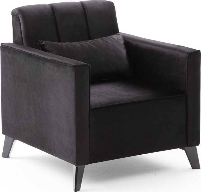 Lenestol laget av bøk med fløyelstrekk. Plast ben.
