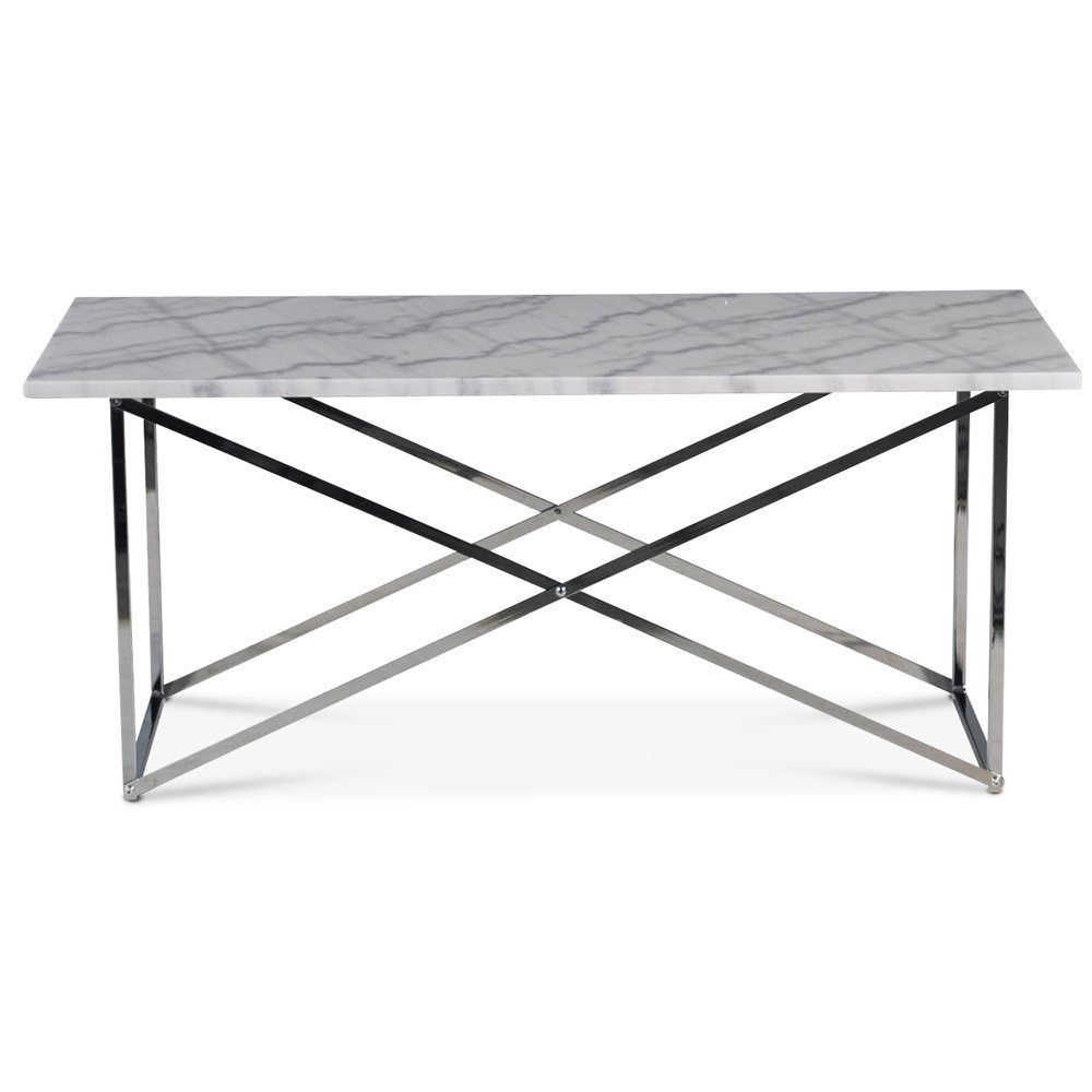 Sofabord Paladium med krommet understell og topplate med lys ekte marmorsten.