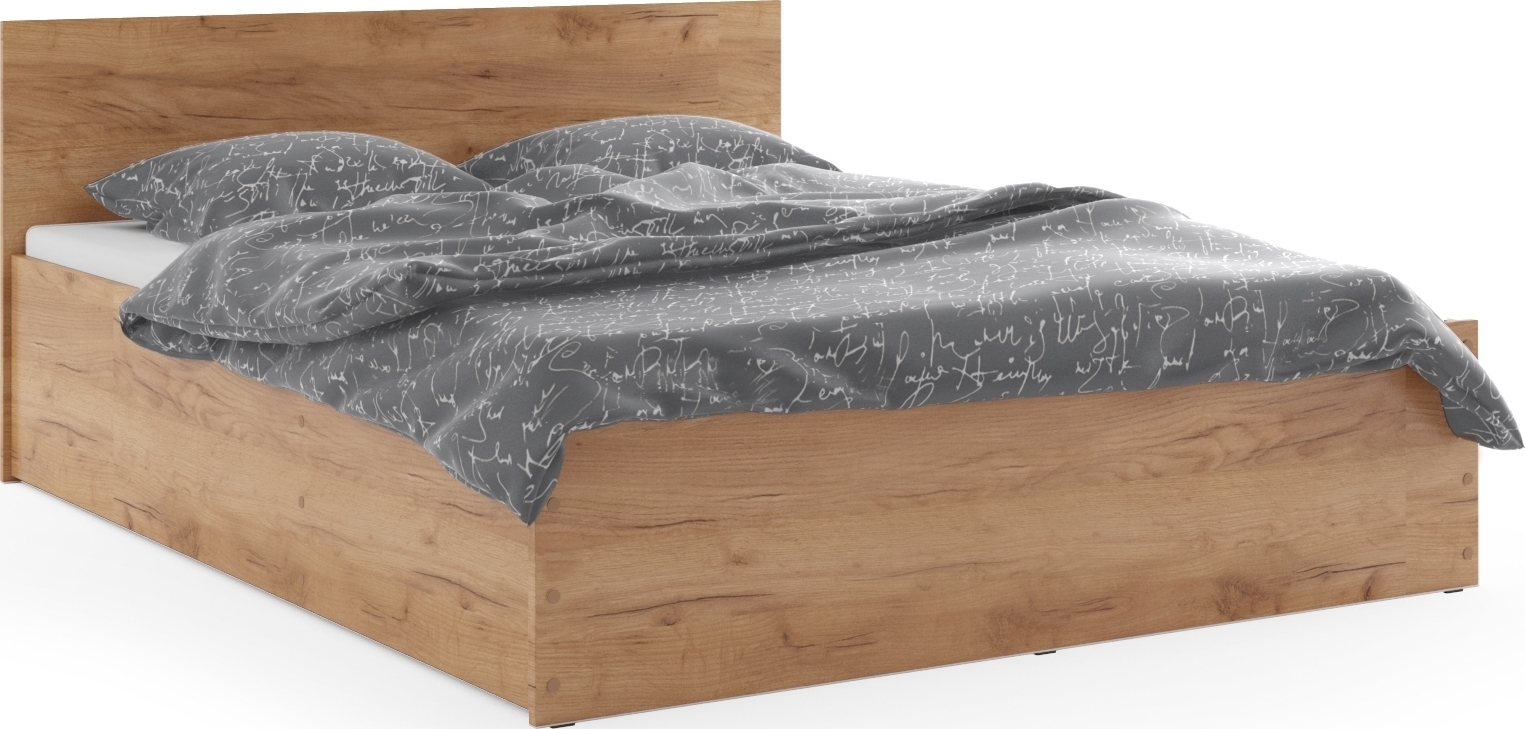 Stilren og rimelig rammeseng i valgfri farge og størrelse. Rammen er laget av laminert plate og finnes i hvit, grafitt og eik. Ribbebunnen av stabile bjørkelister som samhandler med automatiske gassfjær. Skummadrass som er 10 cm tykk er inkludert.