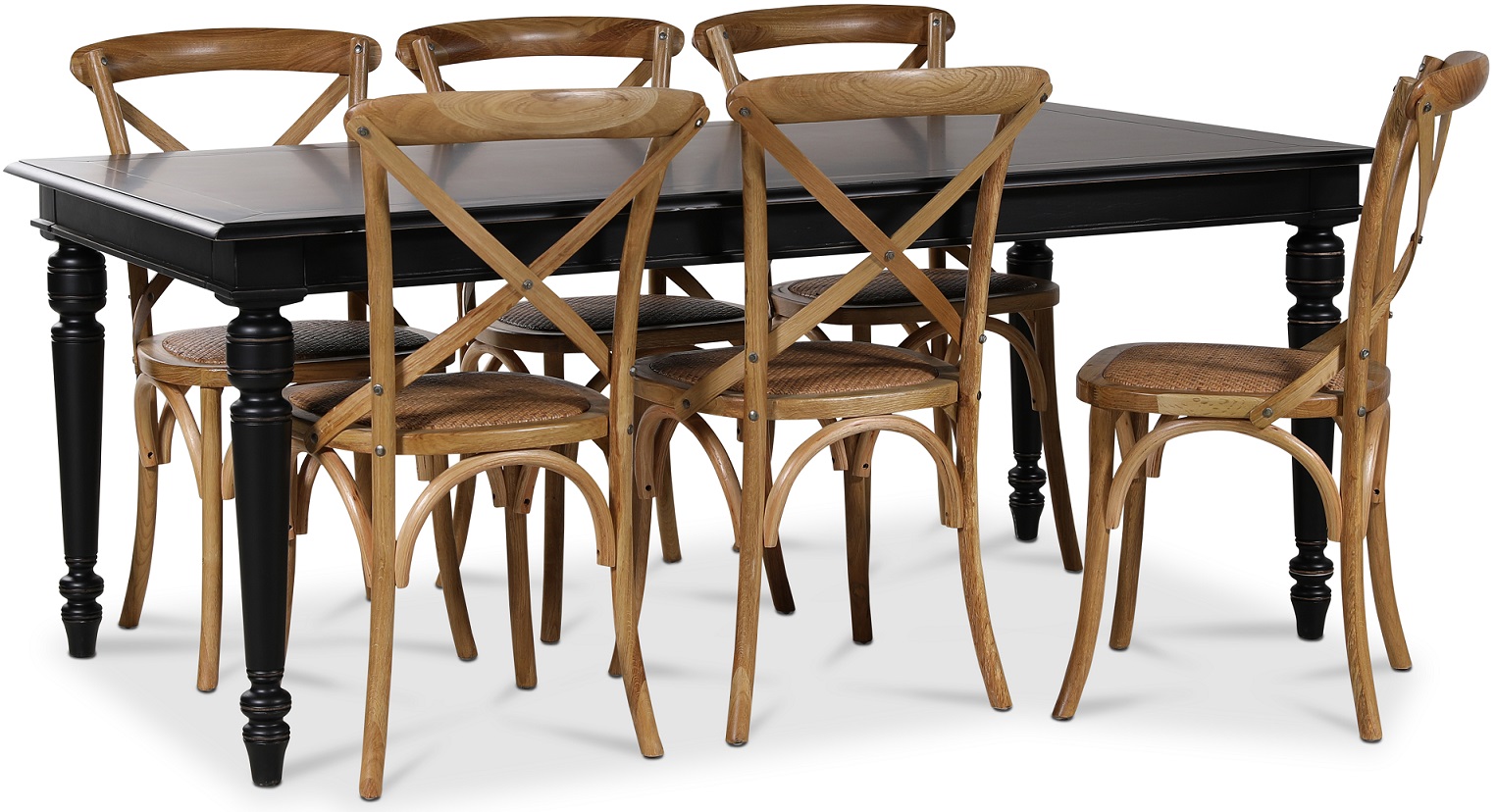 Paris spisegruppe 180 cm bord svart + 6 st Gaston spisestoler i natur