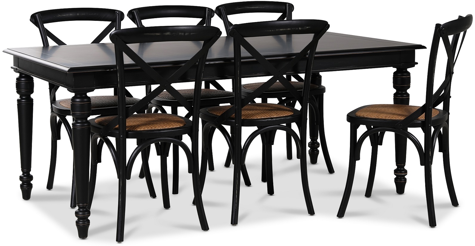 Paris spisegruppe 180 cm bord svart + 6 st svarte Gaston spisestoler