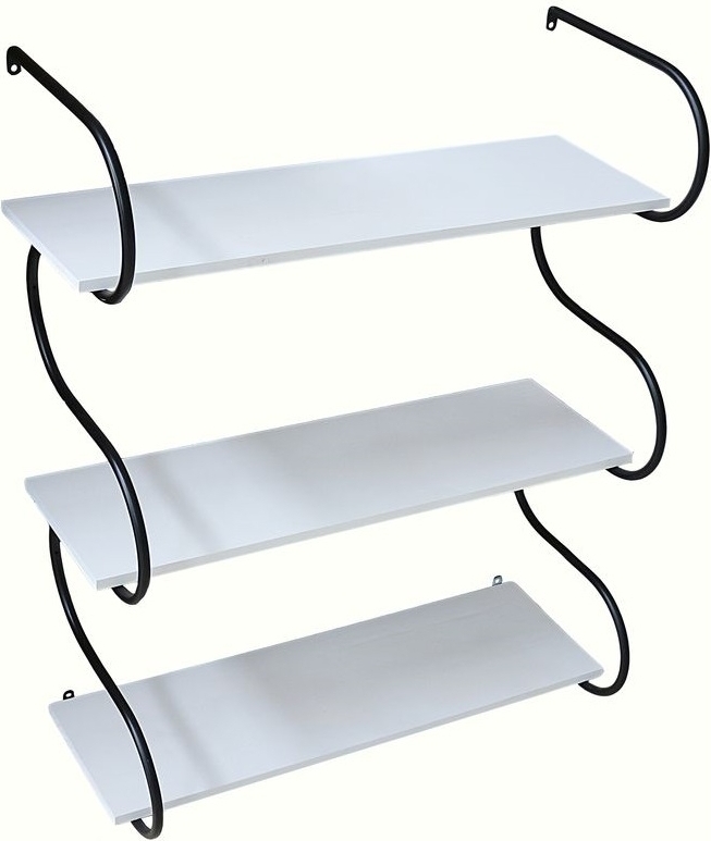 Paris vegghylle med svarte metallbraketter og hylle i hvitlakkert tre.
