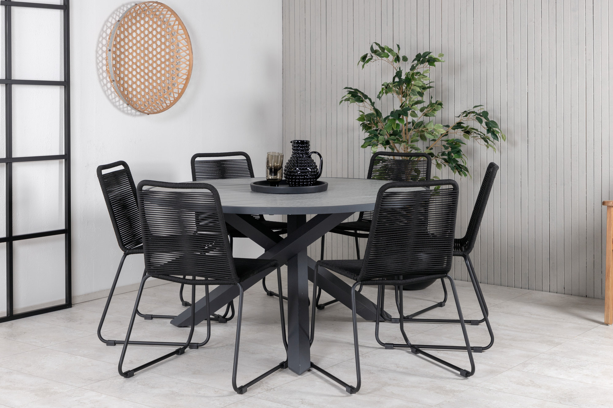Parma uteservering med 6 Lindos stablestoler - Sort/Grå