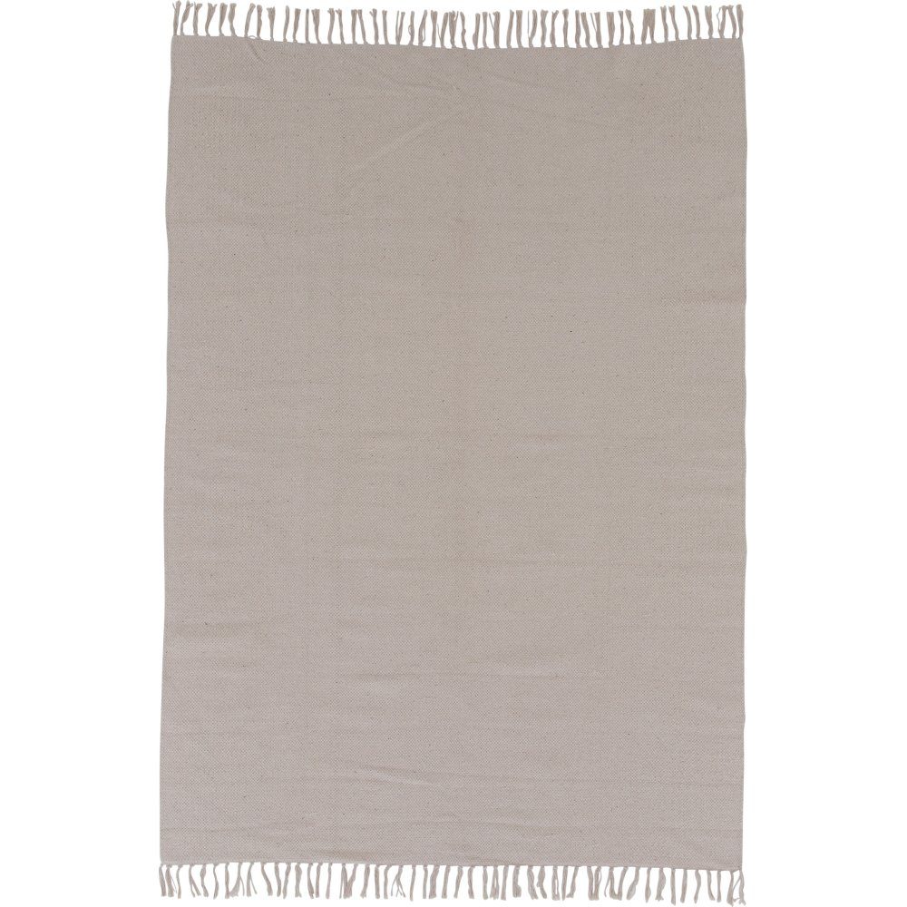 Bomullsteppe i beige fargetone med dekorative frynser.