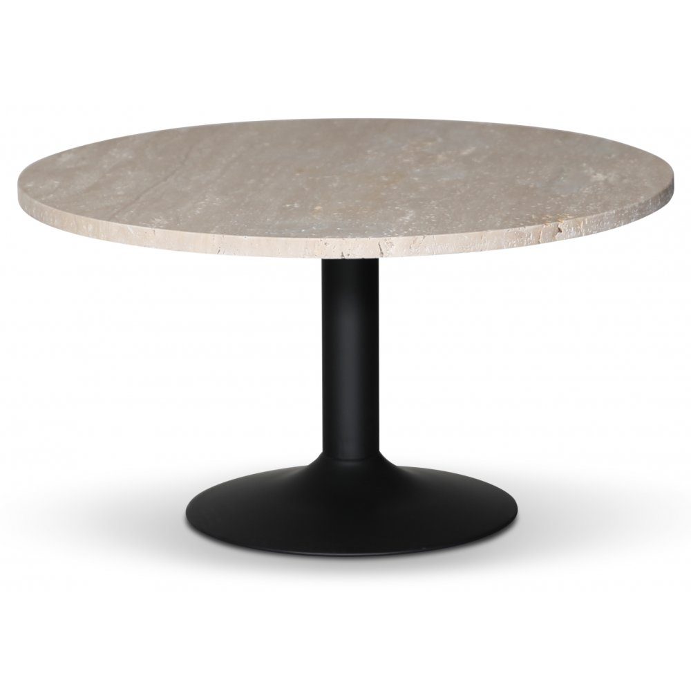 Et stilig salongbord med et luksuriøst moderne preg. Understellet er laget av matt sort metall og bordplaten er laget av ekte lett kalkstein, travertin.