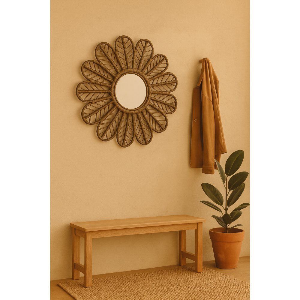 Peacock speil i rotting Ø 90 cm - Brun + Kart med møbelpoter inkludert!