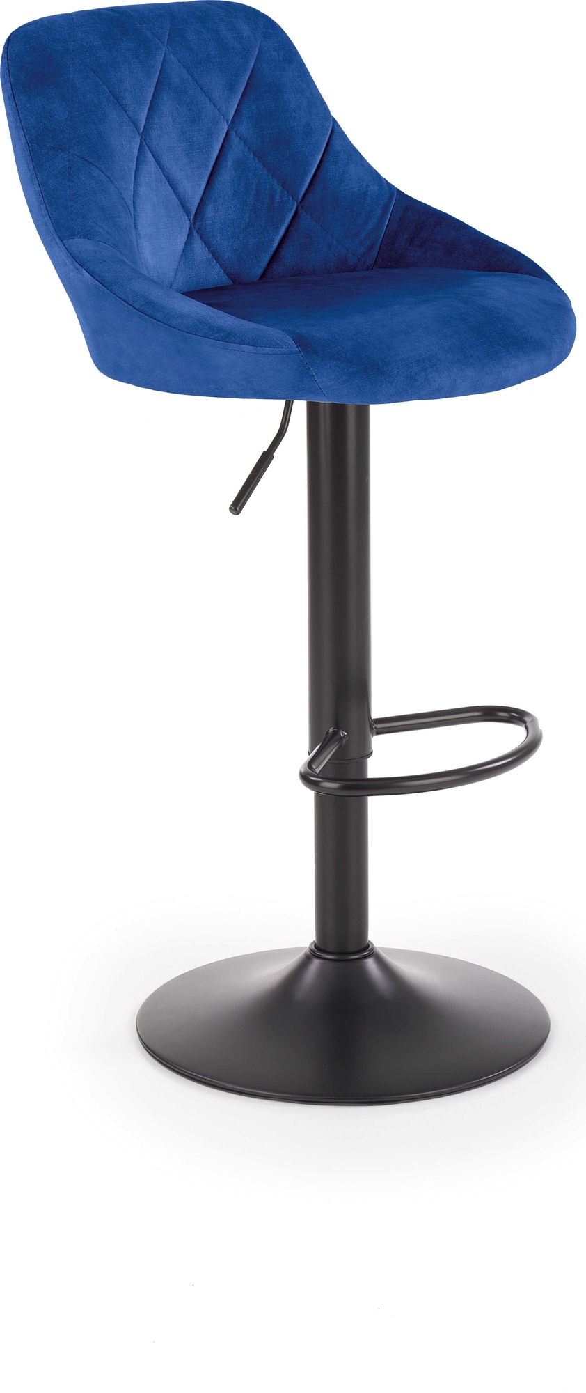 Barstol med pulverlakkert stålbunn og trekk i fløyelsstoff.