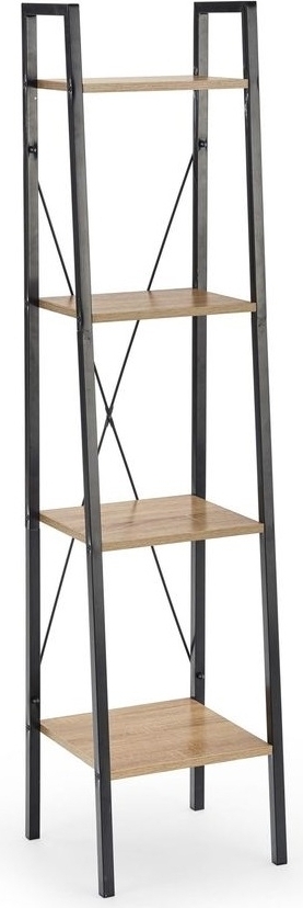 En pen bokhylle med et moderne design. Bokhyllen har 4 hyller for praktisk oppbevaring, som er laget av MFP (premium treplate) med en nydelig finér. Selve rammen er laget av pulverlakkert metall.