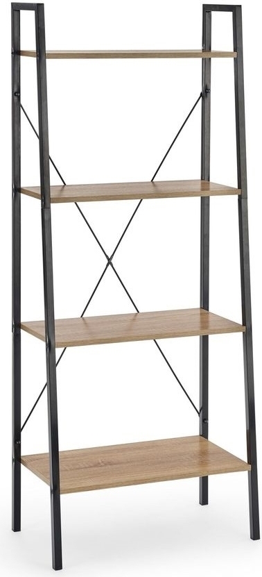 En koselig bokhylle med et moderne design. Bokhyllen har 4 hylleplan for praktisk oppbevaring, produsert i MFP (premium treplate) med en herlig finér. Selve rammen er produsert i pulverlakkert metall.