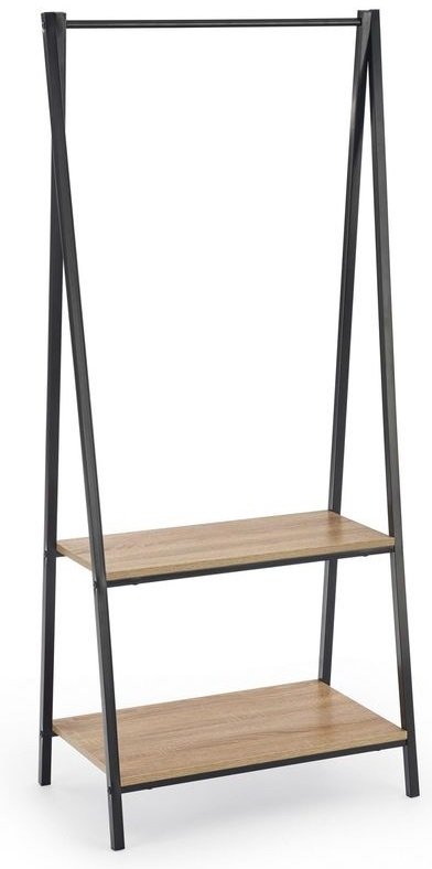 En fin skohylle med moderne design. Skohyllen har 2 hylleplan av MFP (premium treplate) med herlig finér for oppbevaring av sko og en praktisk stang som kan brukes som kleshenger, produsert i pulverlakkert metall.