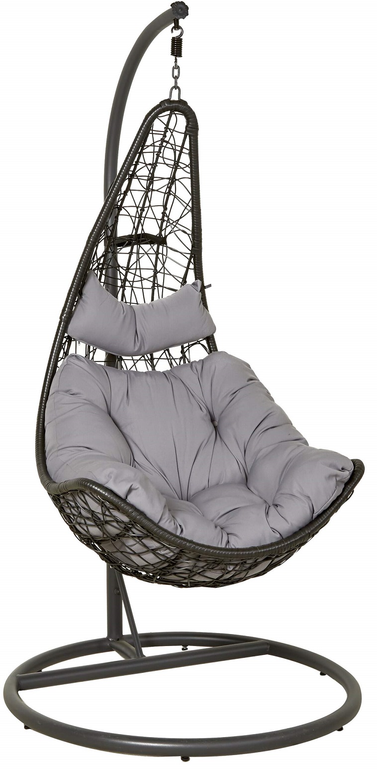 En nydelig hengestol med moderne design. Laget av metall og kunstrotting, med en kraftig fjær som holder stolen flytende. Perfekt for uteplassen eller å plassere i hagen for å nyte sommeren fullt ut.