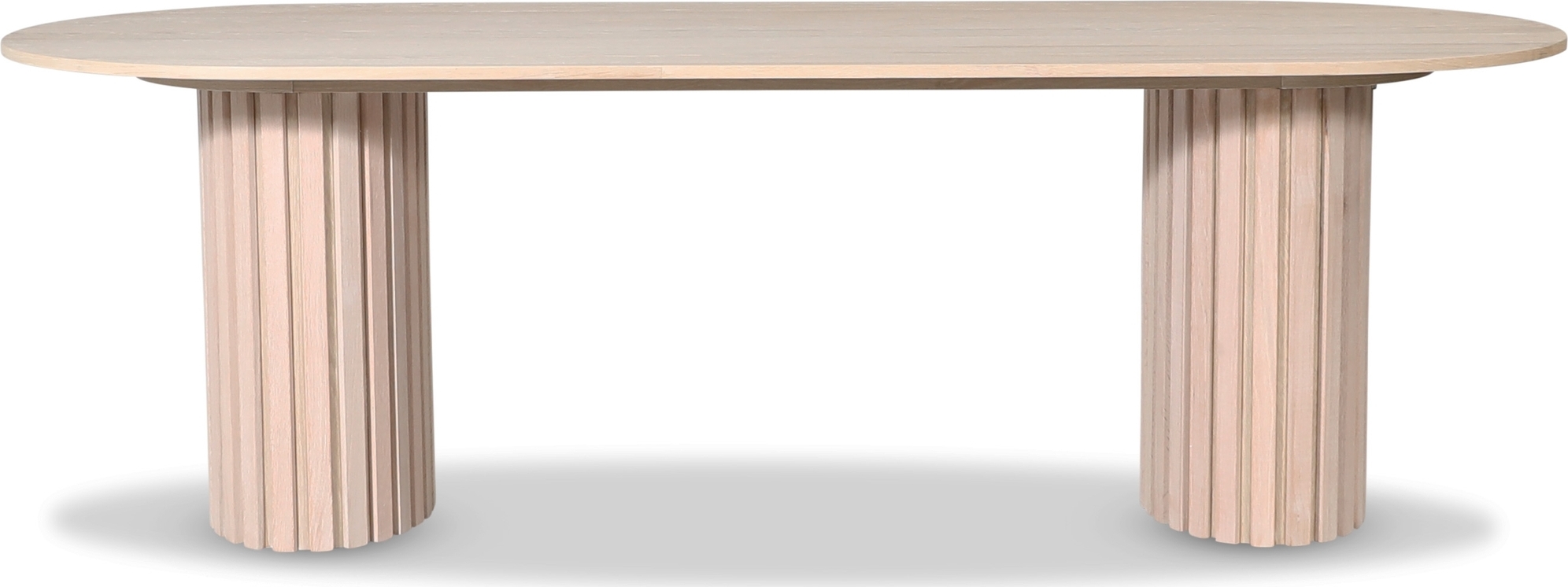 PiPi bordserien vår, står for håndverk, design og holdbarhet. Kommer i valnøtt, whitewash, svartbeiset tre og eik. Serien inneholder forskjellige størrelser og utførelser. Velg din utførelse for spiseplassen. Denne modellen har en fin oval plate, utførelse whitewash finèr.