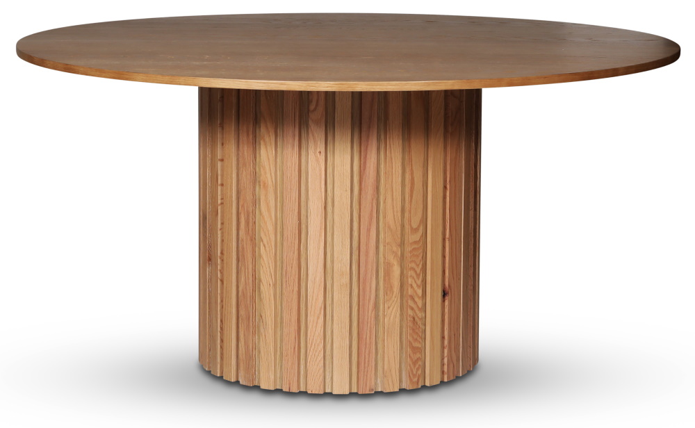 Vår PiPi-bordserien står for håndverk, design og holdbarhet. Leveres i valnøtt, whitewash, svartbeiset tre og eik. Serien inneholder forskjellige størrelser og design. Velg det designet som passer best for din spiseplass. Denne modellen har en stilig rund bordplate i designet finert eik.
