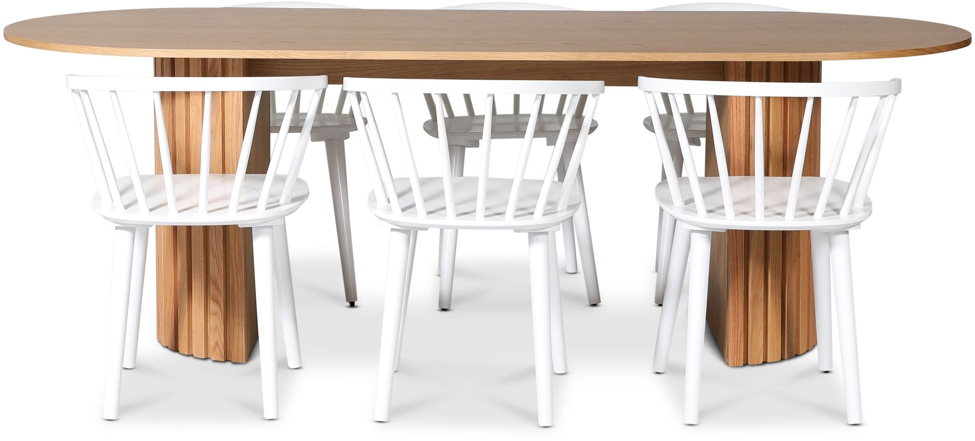 PiPi spisegruppe 230 cm inkl. 6 stk. Dalsland hvite karmstoler - Oljet eik