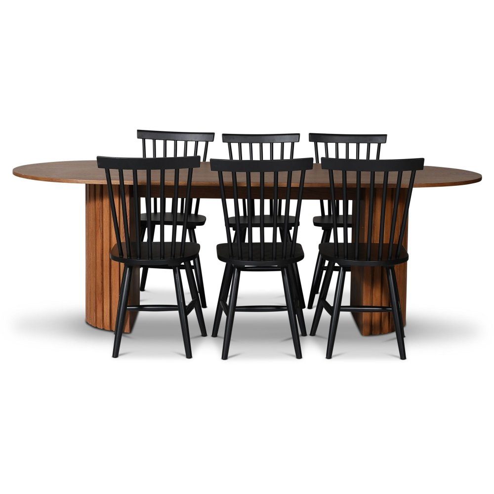 PiPi spisegruppe 230 cm inkl. 6 stk. Karl svarte pinnestoler - Valnøtt: